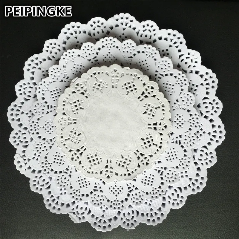 استعارات ل 100 قطع 4.5 ''6. 5 '8.5/8''white جولة الرباط المفارش doyleys و رقة خمر الوقايات تحديد الموقع الحرفية زفاف عيد الجدول الديكور