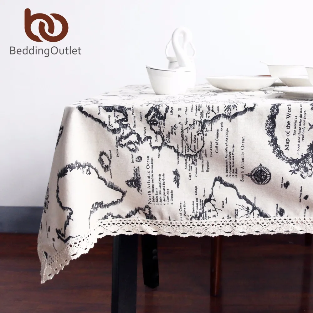 معرض ل BeddingOutlet العالم خريطة سماط الأوروبي الوظائف مفرش طاولة ل نزهة حزب الكتان القطن مفارش المائدة مستطيلة 9 الأحجام