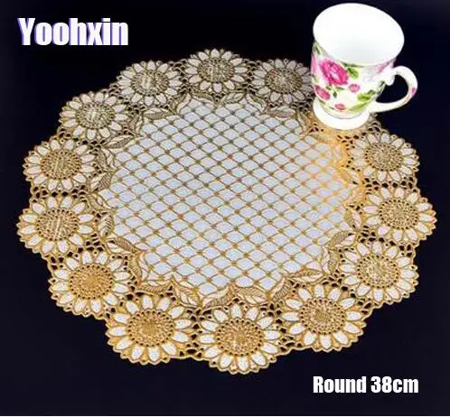 صور من الحديثة الدانتيل PVC الذهب البلاستيك الجدول مكان حصيرة سادة القماش كوب الزفاف الطعام الشاي قاعدة أكواب القهوة القدح تحديد الموقع شرشف الطاول...