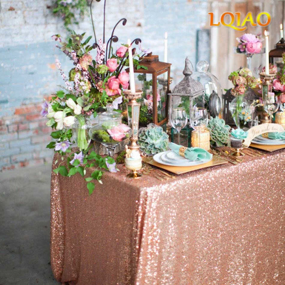 استعارات ل 120x200 سنتيمتر/120x400 سنتيمتر مجموعة ترتر براقة سماط مستطيل-روز الذهب مفرش طاولة من الترتر ل الزفاف عيد الميلاد حزب الديكور