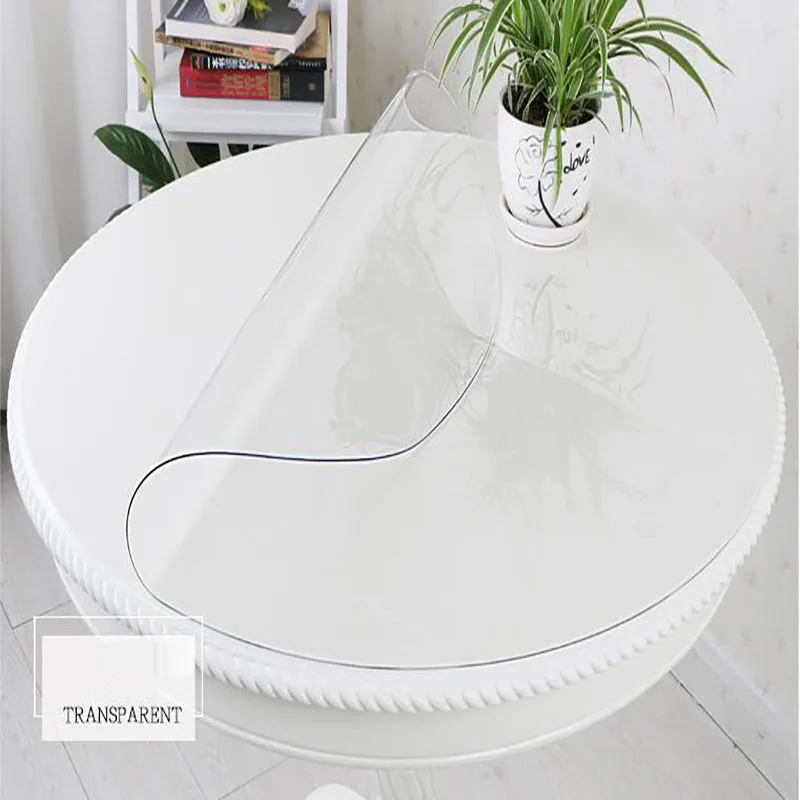 صور ل 1.5 مللي متر سميكة جولة سماط أحجام المنزل غرفة الطعام سماط شفافة المتاح PVC الجدول عداء طاولة مقاومة للمياه غطاء