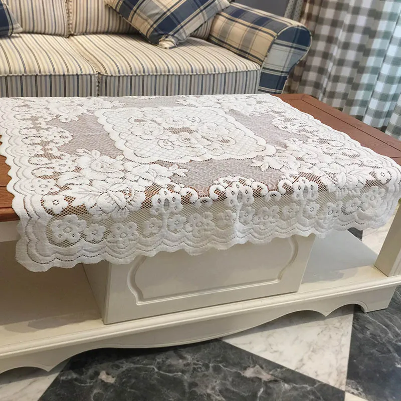 وانت enالبحث عن معلومات Table, en ese momento 80*80 سنتيمتر الدانتيل مفارش المائدة نسيج للديكور المنزل البوليستر الأبيض الأزهار شبكة مربع طاولة قهوة العشاء غطاء سماط es posible poner appeal