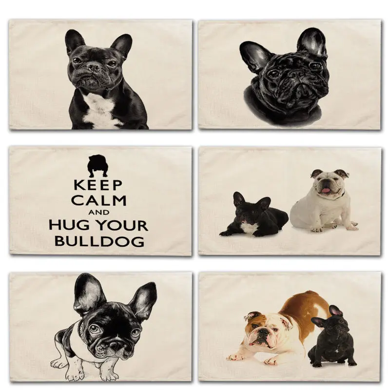صور ل 1 قطعة الفرنسية البلدغ الكلب نمط تحديد الموقع طاولة طعام حصيرة القطن الكتان شرب كوستر كأس حصيرة 42*32 سنتيمتر المطبخ اكسسوارات MA0046