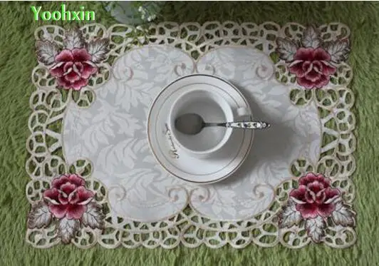 معرض من الحديثة الحرير الجدول مكان حصيرة القماش الدانتيل التطريز سادة فنجان شاي القدح عيد الميلاد كوستر لوحة تحديد الموقع القهوة المفرش الطعام المط...
