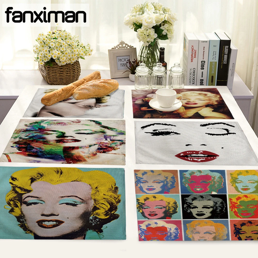 استعارات من عالية الجودة طاولة طعام الحصير فن البوب مارلين مونرو القطن الكتان المواد المطبخ المنزل ديكور للطاولات شابلن المفارش